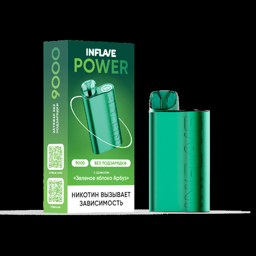 Электронная сигарета INFLAVE POWER 9000 затяжек Зеленое Яблоко Арбуз - купить в Курске